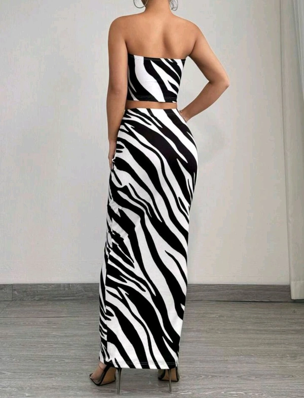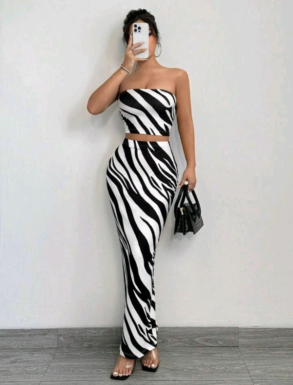 2 piezas Conjunto de top tubo y falda ajustado con estampado de cebra de moda de verano para mujer
