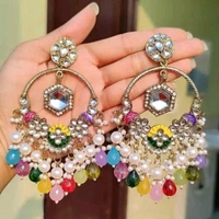 Afghani Multicolor Bollywood Style Kundan Jhumka Earrings Enameled Jewelry Set
