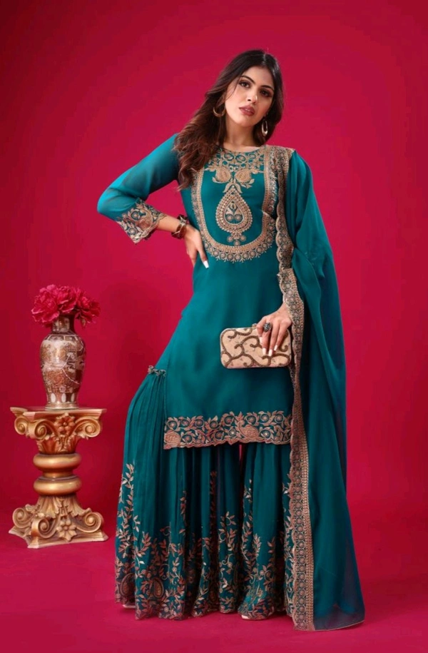 Set Content 1 Top :1 Sharara ; 1 Dupatta