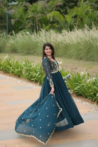 Beautiful Aqua Blue Color Zari Embroidered Work Gown