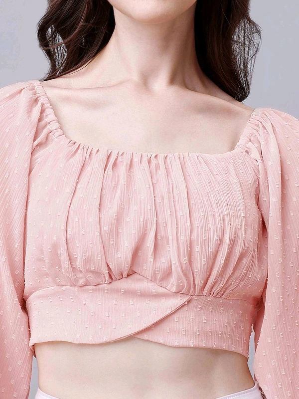 Beige Chiffon Crop Top with Bow