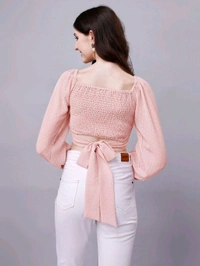 Key Feature - Smocking (at back), Overlap belt design (at waist), exaggerated bow detail (at back)