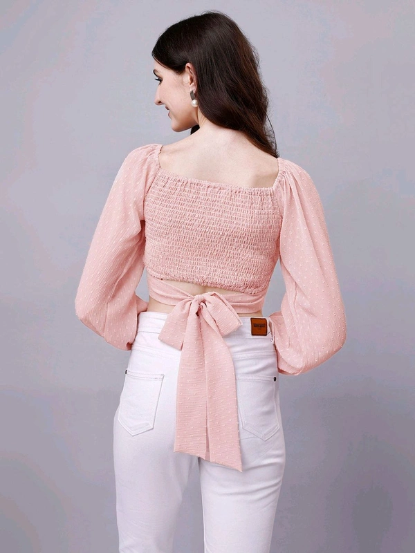 Beige Chiffon Crop Top with Bow