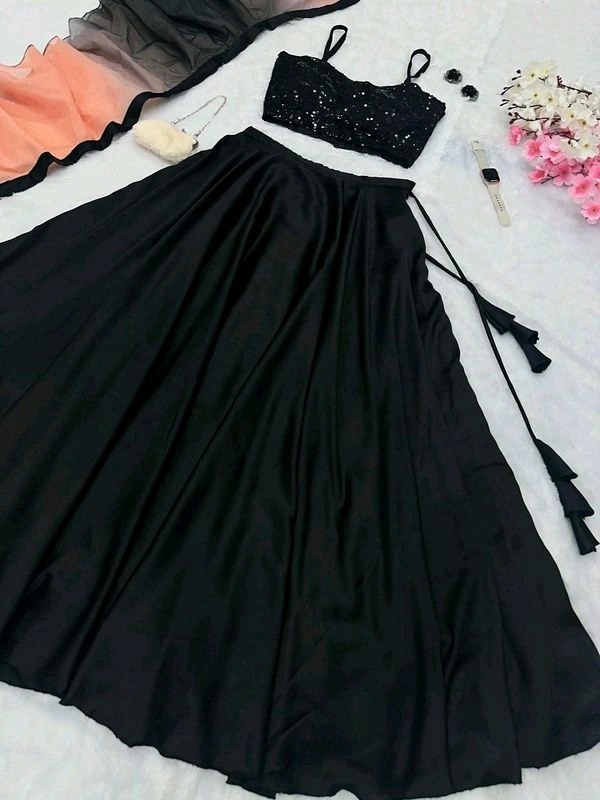 Black and Pink Lehenga Choli in Sequence Georgette Blouse and Satin Lehenga
