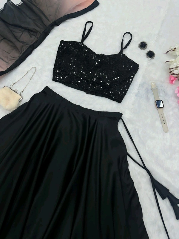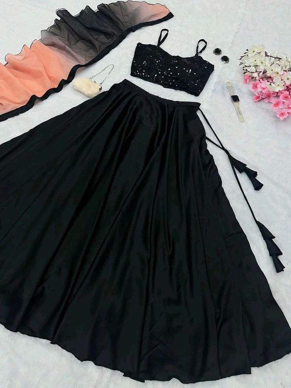 Black and Pink Lehenga Choli in Sequence Georgette Blouse and Satin Lehenga