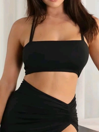 Name : Women Black Shoulder Straps Crop Top With High Slit Skirt Co-Ords