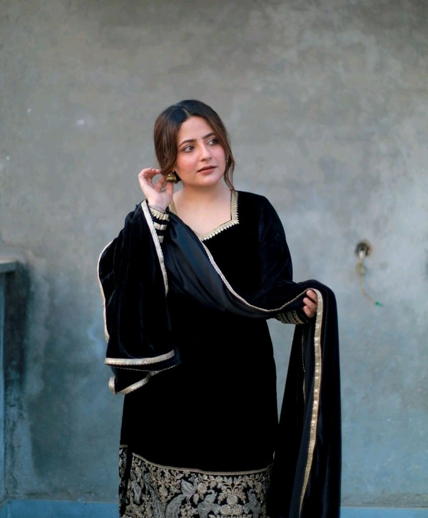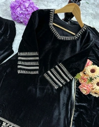 Black Velvet Winter Embroidered Kurta pant Dupatta set | Indian Ethnic Women Wear | Thick Festive Embroidered Kurti | Bollywood Formals