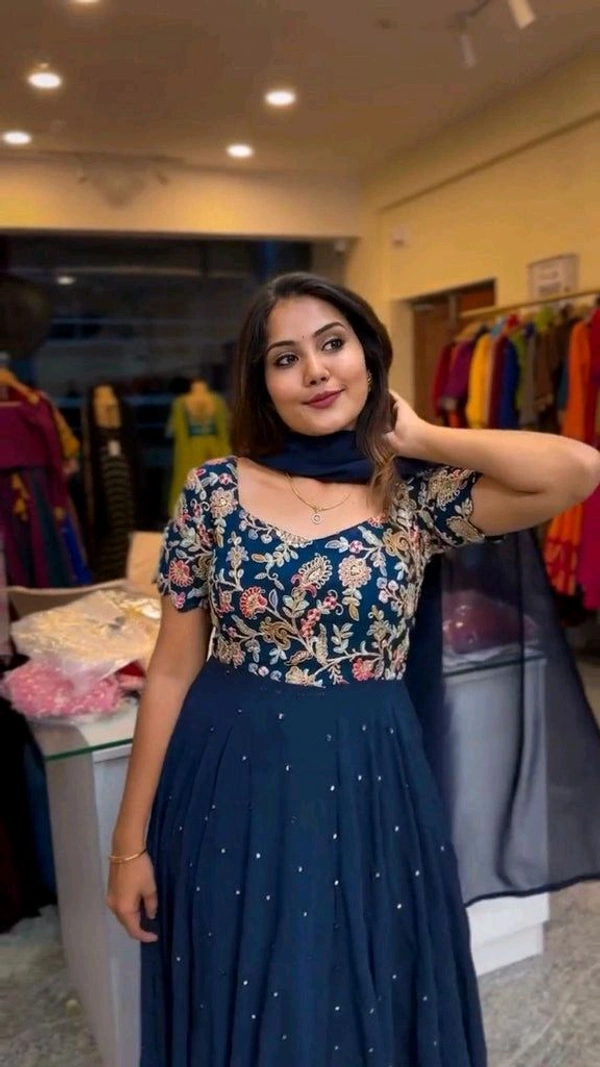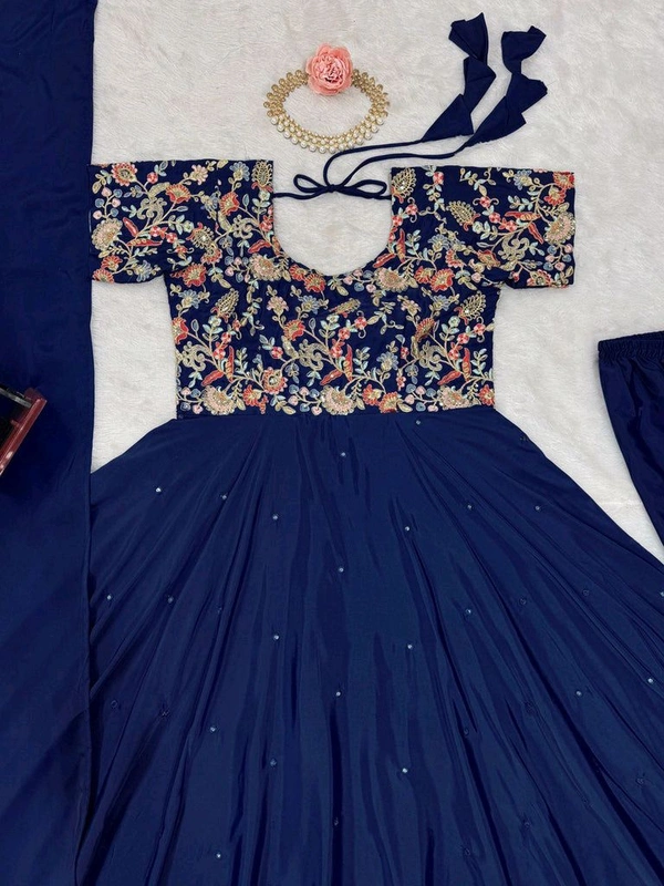 Blue Elegant Heavy Natural Crepe Gown with Intricate Coding Dori & Sequin Work