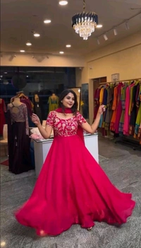 Blue Elegant Heavy Natural Crepe Gown with Intricate Coding Dori & Sequin Work