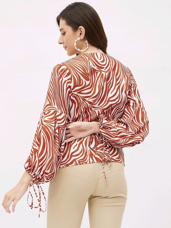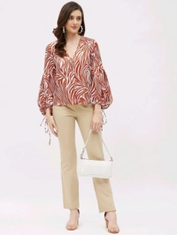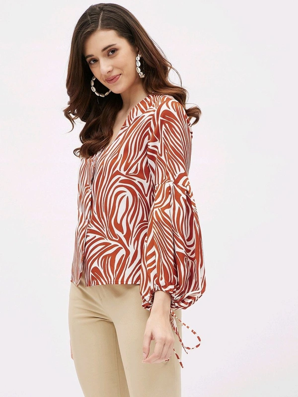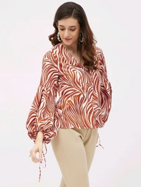 Casual Flared Sleeves Graphic Print Women Brown Top