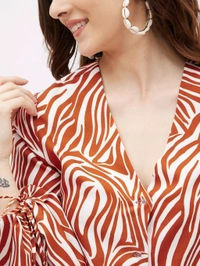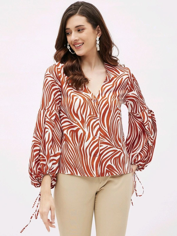Casual Flared Sleeves Graphic Print Women Brown Top