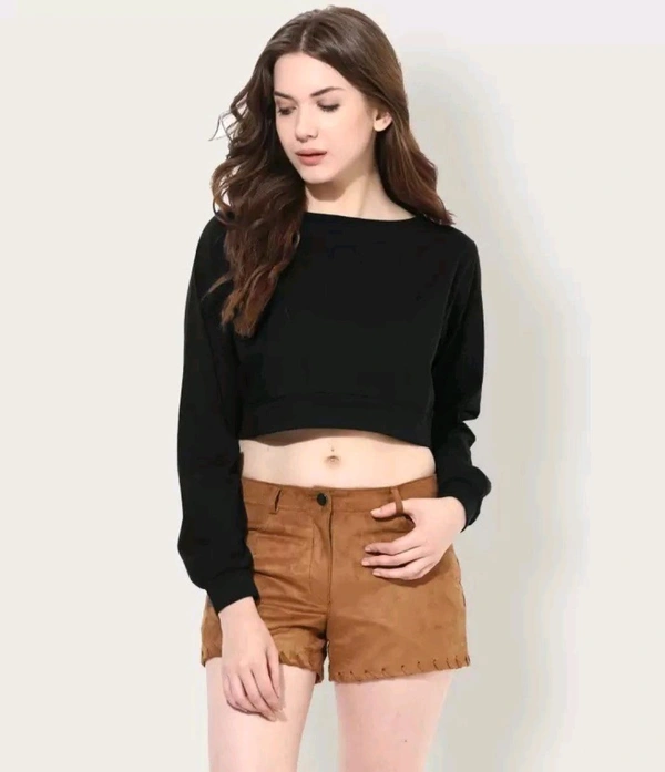 Style Code. Women's Casual Round Neck Full Sleeves Crop Top