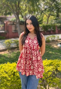 Casual Sleeveless Floral Print Women MaroonTop