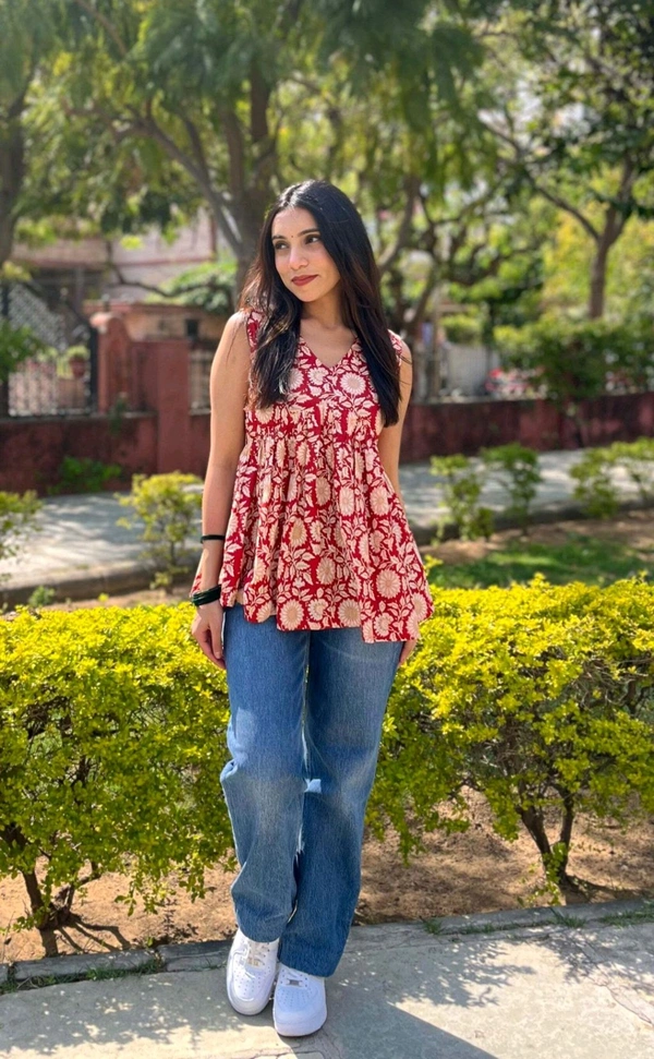 Casual Sleeveless Floral Print Women MaroonTop
