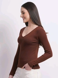 Casual Wear Full Sleeve Regular Fit Top for Women, Top for Girls Free Size (Bust 28-32,Length-18, Brown)