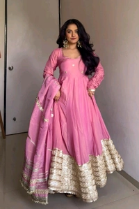 Celebrity Style Dusty Pink Color Vichitra Silk With Embroidery Zari-Codding Sequins Work Anarkali Gown