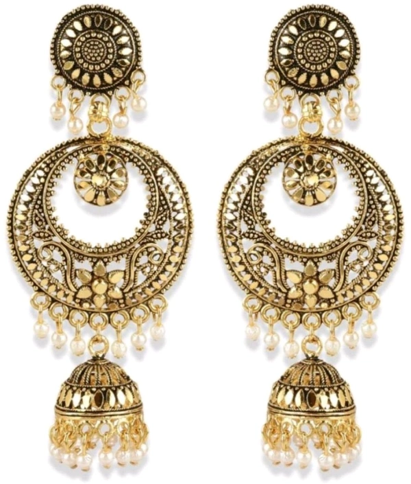 Classic Designed Gold Plated Enamelled Jhumka Earrings For Women And Girls Pearl Alloy Jhumki Earring