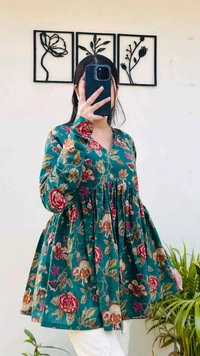 Cotton Flared Bottle Green Aliacut Floral Print Peplum Top