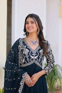 Shop this Beautiful Heavy Embroidered Faux Georgette Party Wear Gown & Dupatta at the best prices. It comes in Fox Georgette fabric and Sequence Embroidery Work. Add this beautiful Sequence Embroidery Work Gown to your Gown for women’s wardrobe and flaunt it at any party and occasion.