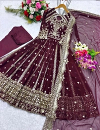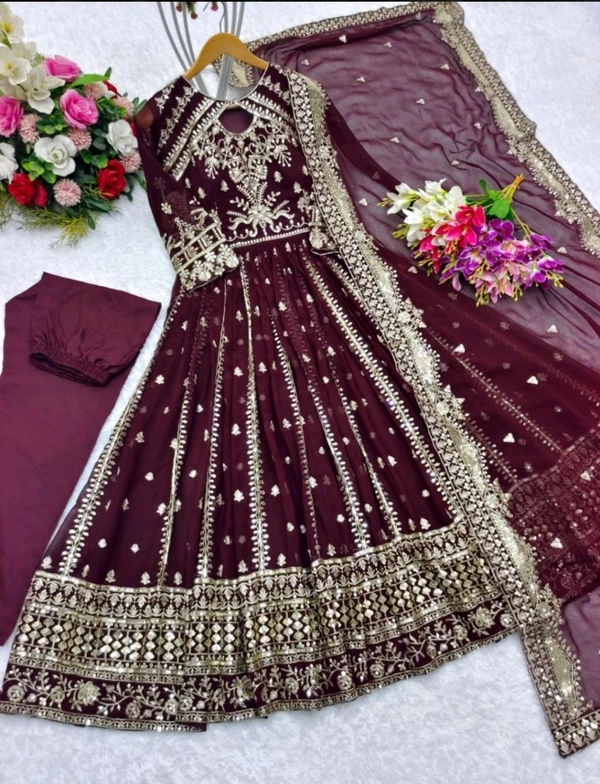 Designer Teal Blue Color Heavy Work Anarkali Gown