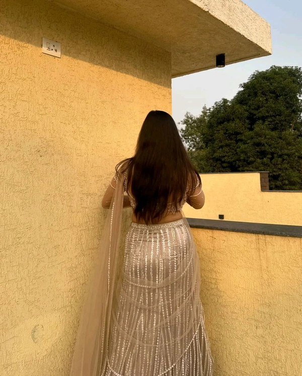 Graceful and timeless, this peach net pre-stitched saree is adorned with an intricate hand embroidery featuring pearls, katdana, and sequins. Paired with a full-sleeve blouse and a delicately designed net pallu, this ensemble radiates elegance. Perfect for a modern yet traditional look, the saree's lightweight net fabric ensures comfort without compromising on grandeur.