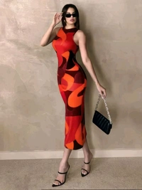 Geometric Print Red One Piece