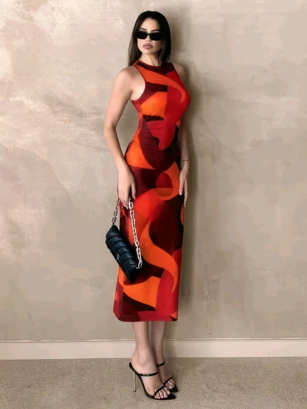 Geometric Print Red One Piece