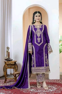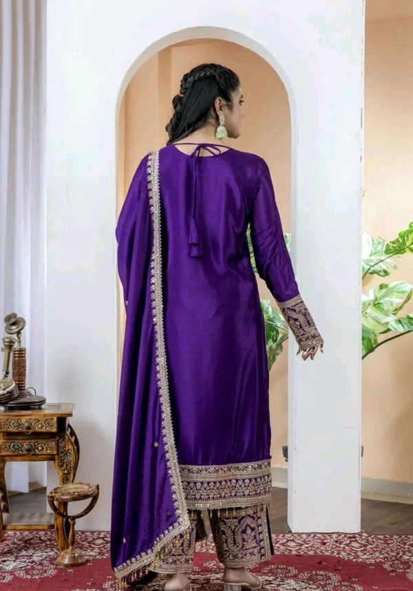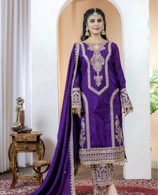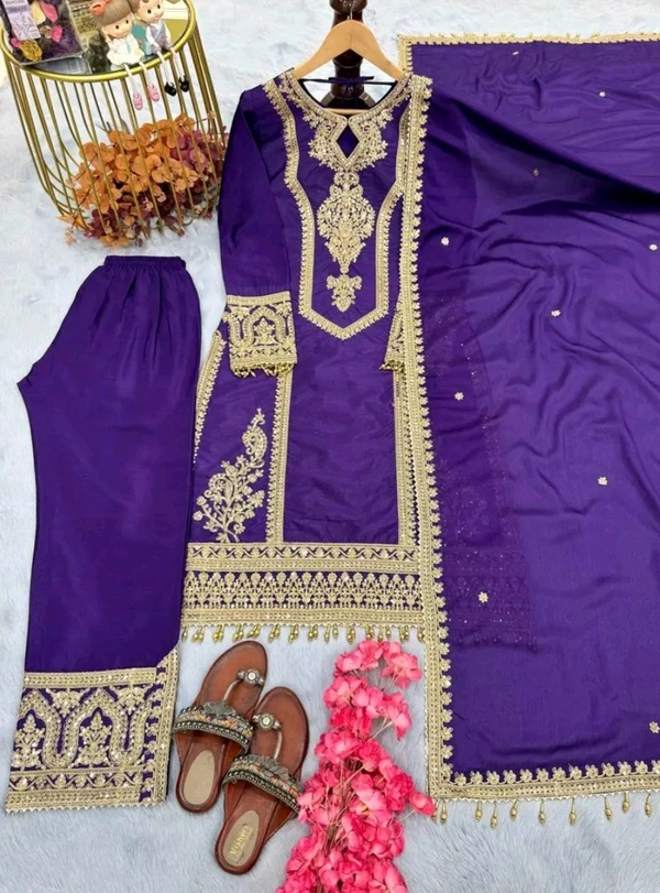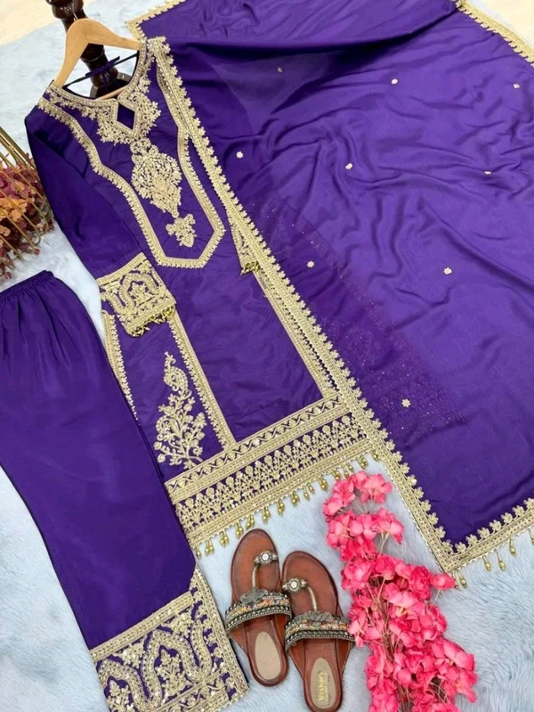 Heavy Chinon Silk kurti Eith Embroidered salwar And Dupatta Set