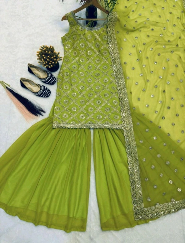 *Plazzo Fabrics* :Heavy Faux Georgette WithWork Embroidery thread,Sequence Work Fully Flair