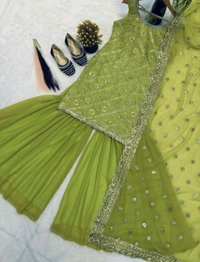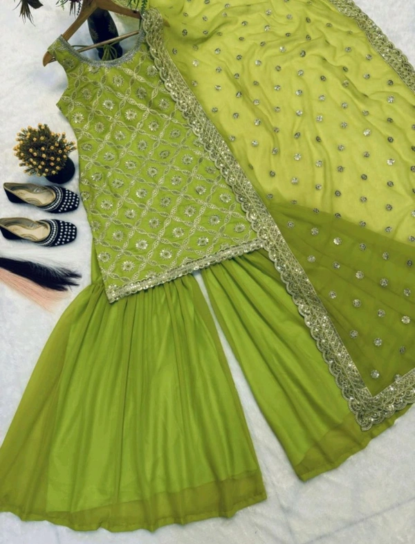*Plazzo Fabrics* :Heavy Faux Georgette WithWork Embroidery thread,Sequence Work Fully Flair