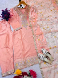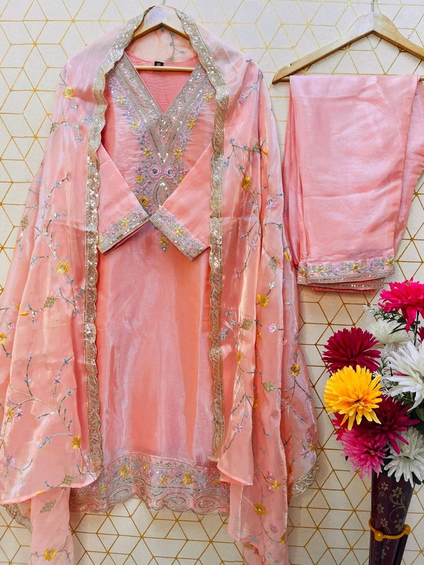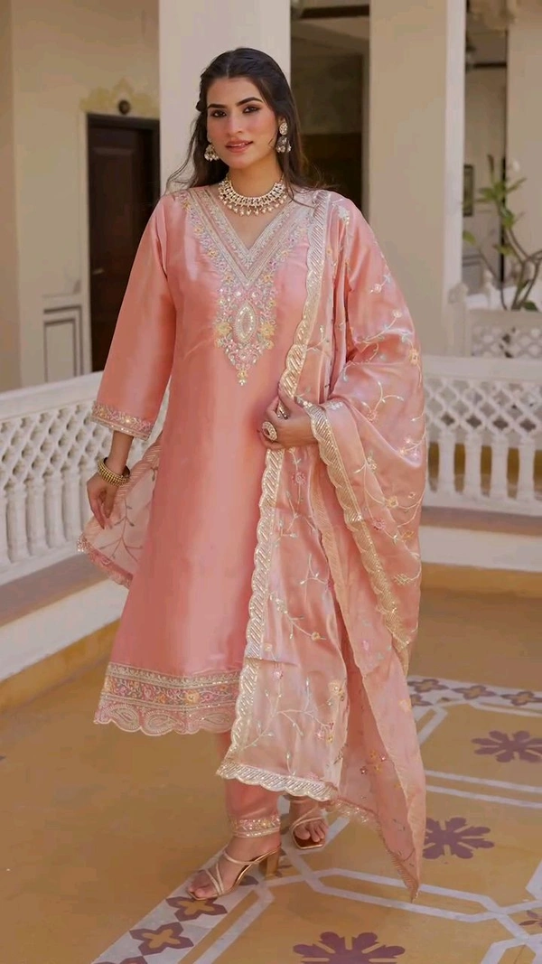 Heavy Sequence Embroidered Work Premium Jimmy Choo Silk Kurta Suit Set