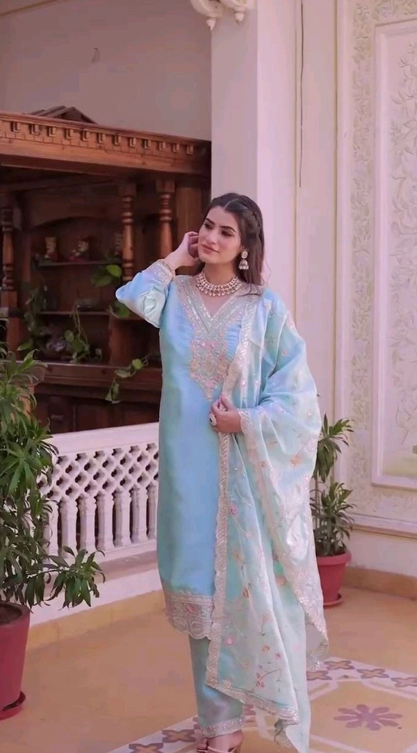 Heavy Sequence Embroidered Work Premium Jimmy Choo Silk Kurta Suit Set