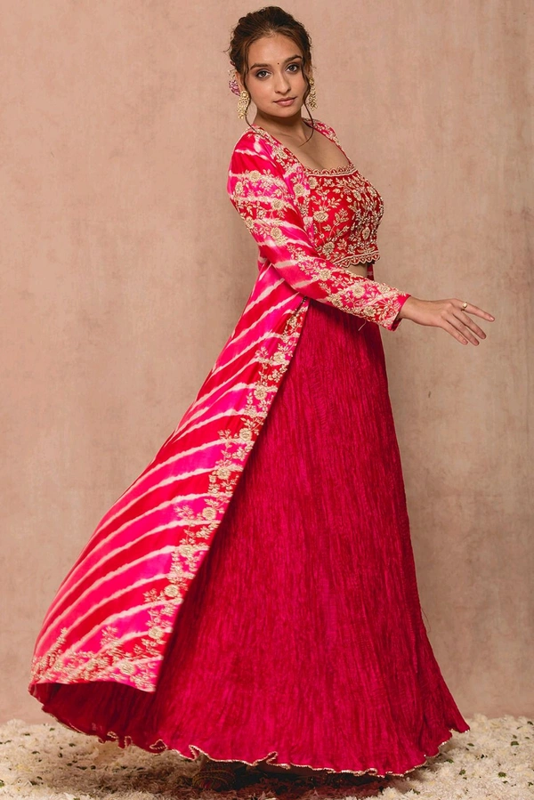 HOCONN New Super Trending Shrug Lehenga Sequence Coding Embroidery Work with Koti Banglori Embroidery Sequence Work Blouse for Beautiful Women and Girls