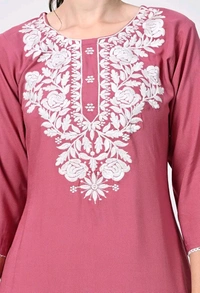 **SOPHISTICATED OFFICE WEAR**: Elevate your work attire with our plain floral straight embroidery western wear for office. These Lucknowi kurtis feature subtle floral embroidery, adding sophistication and style to your professional wardrobe.
