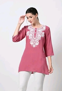 Kurti for Women Short Chikankari Kurtis for Girls Lakhnawi Top Kurta Design for Ladies Woman Straight Embroidery for Office (Short Flower Kurti)