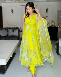 Make a bold style statement in this full-stitched neon-colored Anarkali three-piece suit crafted from soft organza. The vibrant neon hue adds a modern flair to the traditional Anarkali silhouette, creating a captivating ensemble. The soft organza fabric ensures a luxurious feel and graceful drape, making it perfect for special occasions. Embrace the fusion of contemporary design and timeless elegance with this eye-catching suit, where the neon color and soft organza combine to elevate your fashion presence.🫰🏻❤️