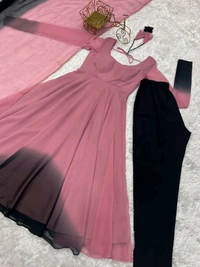 Pure Soft Fox Georgette Most Trendy Padding Fabric Fully Flair Anarkali With Dupatta Set, Pent Ready to Wear