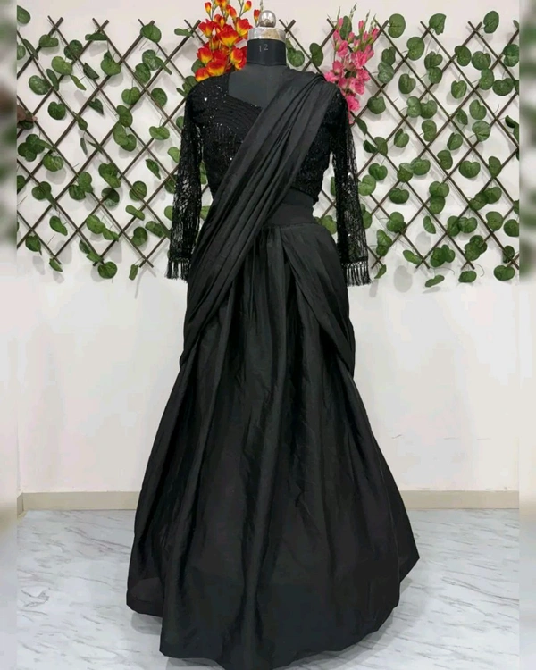 New Party Wear Ready-to-Wear Lehenga Saree with Real Mirror Border Work & Embellished Blouse