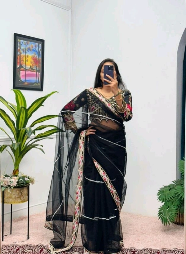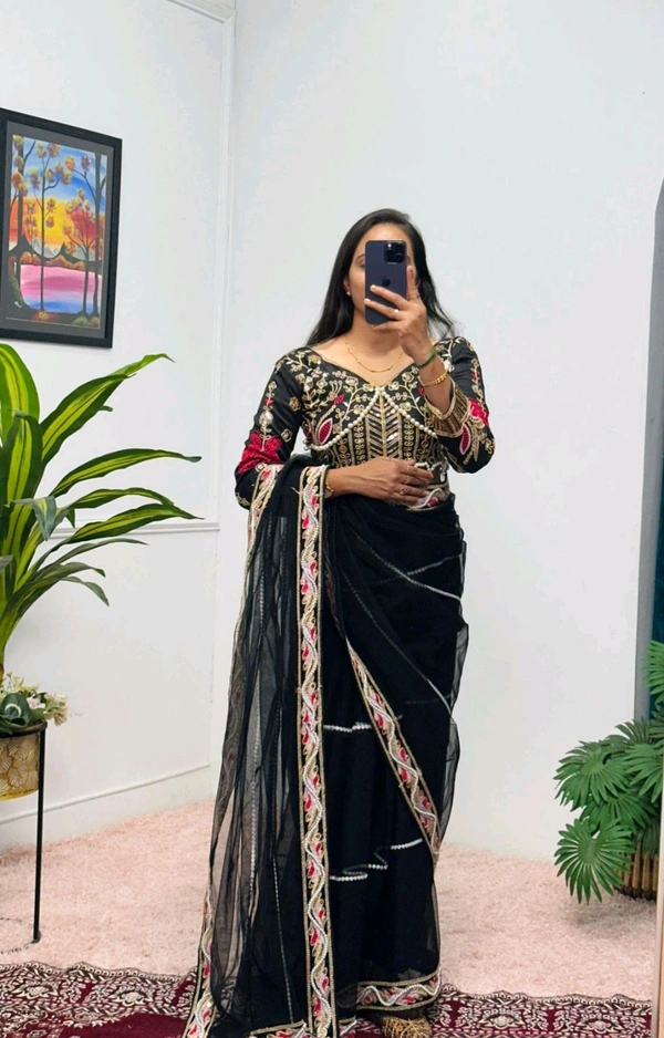 *🥻WE 👀ARE LAUNCHING NEW SUPERHIT DESIGN ON NET FABRIC WITH HEAVY EMBROIDERY AND 4000+ PEARL MOTI WORK SAREE AND BLOUSE🥻*