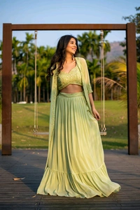 Pastel Olive Lehenga with Jacket