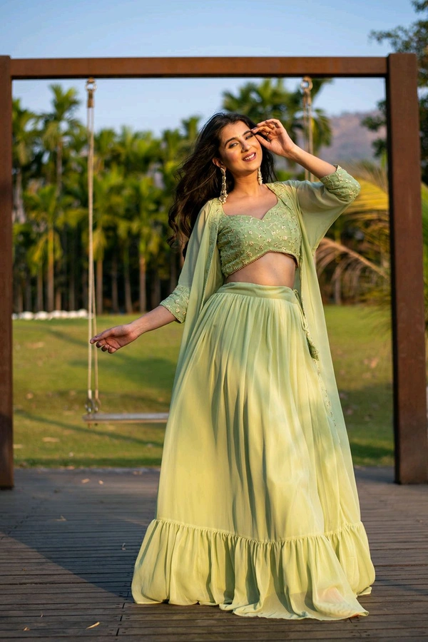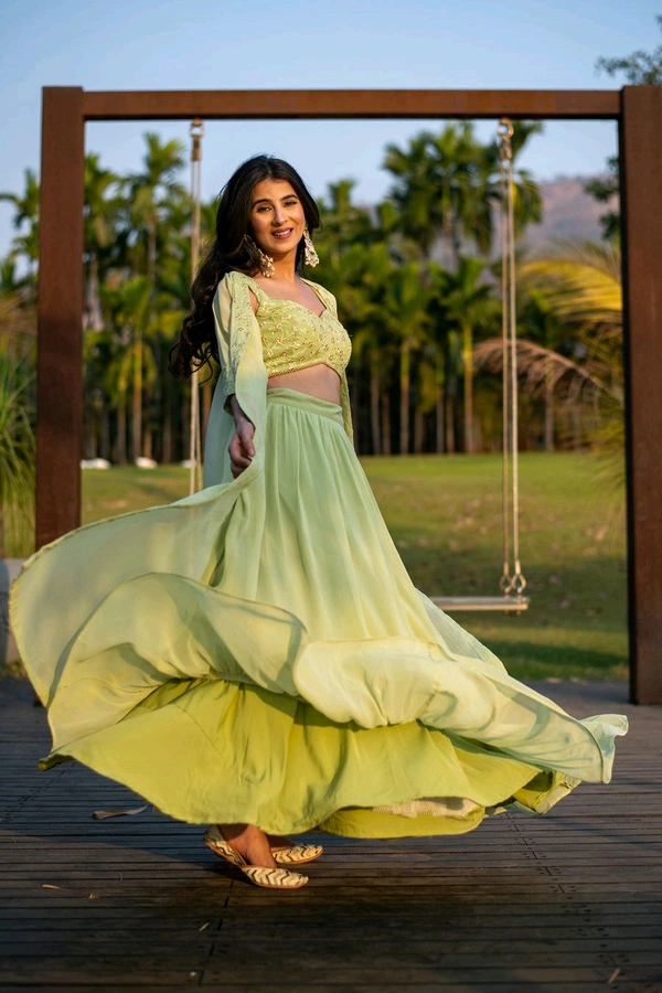 Pastel Olive Lehenga with Jacket
