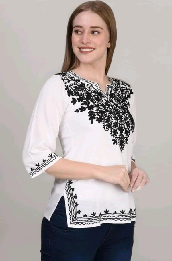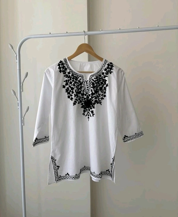 Pinkberry Short Kurta for Women – Chikankari Embroidered Ladies Kurti, Stylish Girls Top, Half Kurtas, Tunic Design Woman Kurtis White