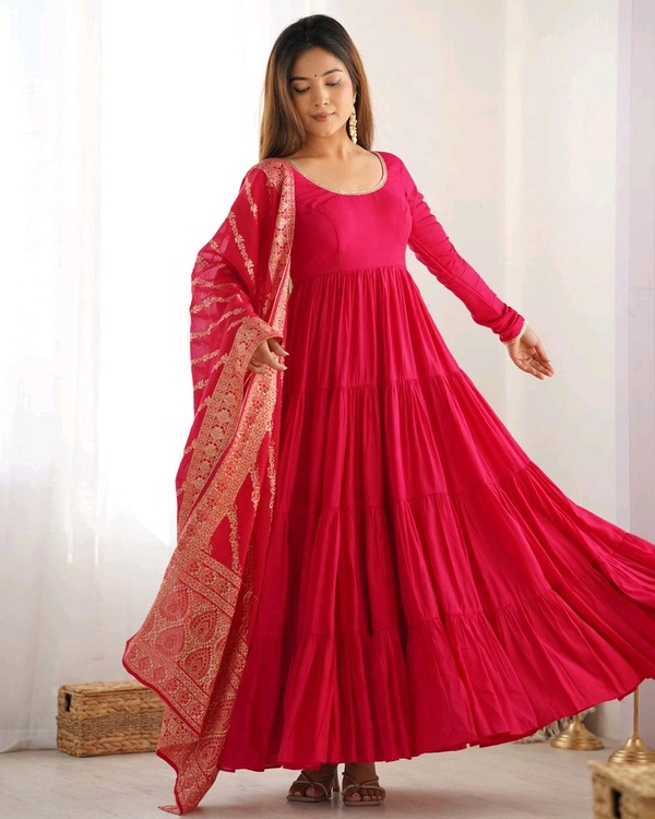 PURE SOFT FOX GEORGETTE FULL FLAIR LAYRED ANARKALI SET
