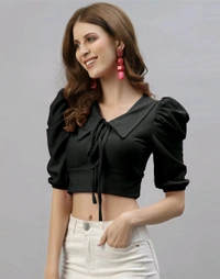 Selvia Women's Lycra Knitted & Solid Crop Top