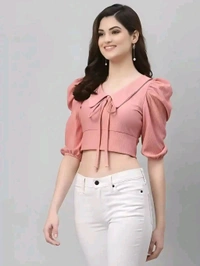 Style: Crop Half Sleeve Shirt || Work: Knitted, Solid