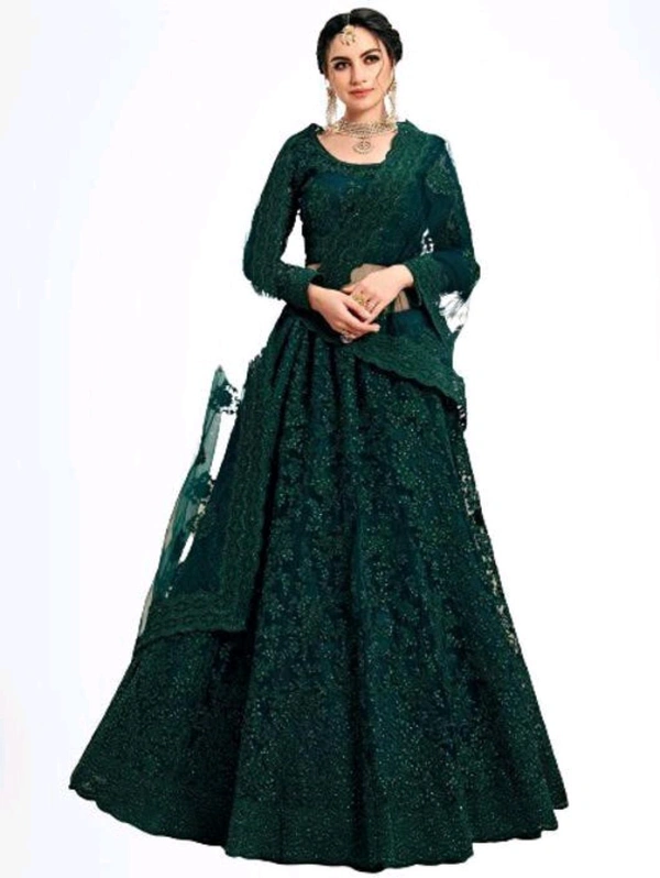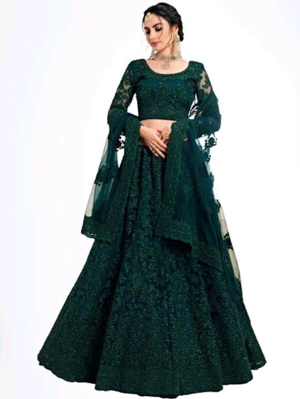 Solid, Embroidered, Embellished, Self Design Semi Stitched Lehenga Choli (Green)