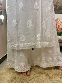 White Viscose Georgette Chikankari Kurta With Palazzo