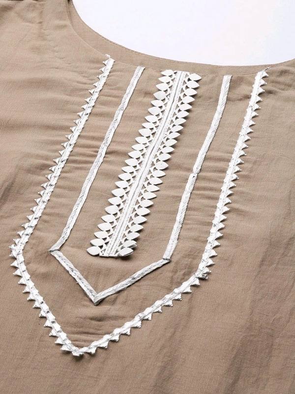 Women Beige Gotta Patti Kurta with Trousers & With Dupatta