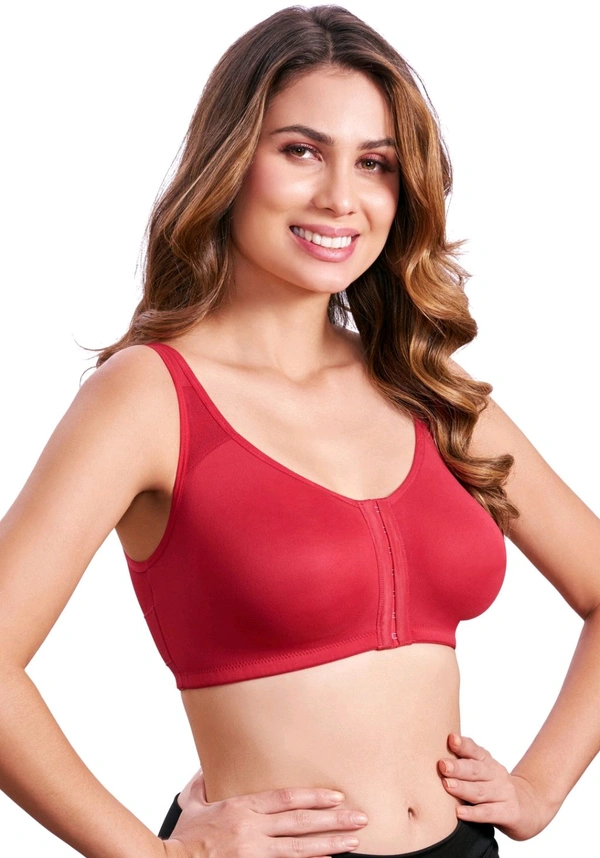 Fit type: Regular, Full support cotton lycra Brushed Double Layered Fabric front open magic bra, with no seams, pads and wire promising a no bounce look. It's full coverage provides maximum support and no spillage from top and sides. Double layered fabric reduces the chances of sheer through.