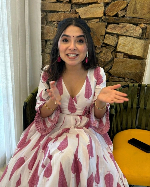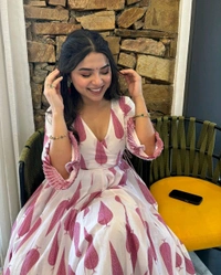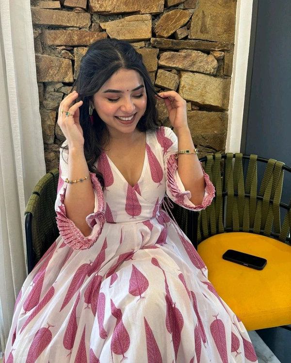 Women Cotton Pink Anarkali Kurta Pant and Dupatta set
